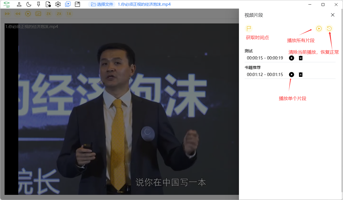 片段:可以给视频添加多个片段,每个片段可以设置开始时间和结束时间以及内容,可以播放片段集合,跳过其他内容。实现渐进学习视频。